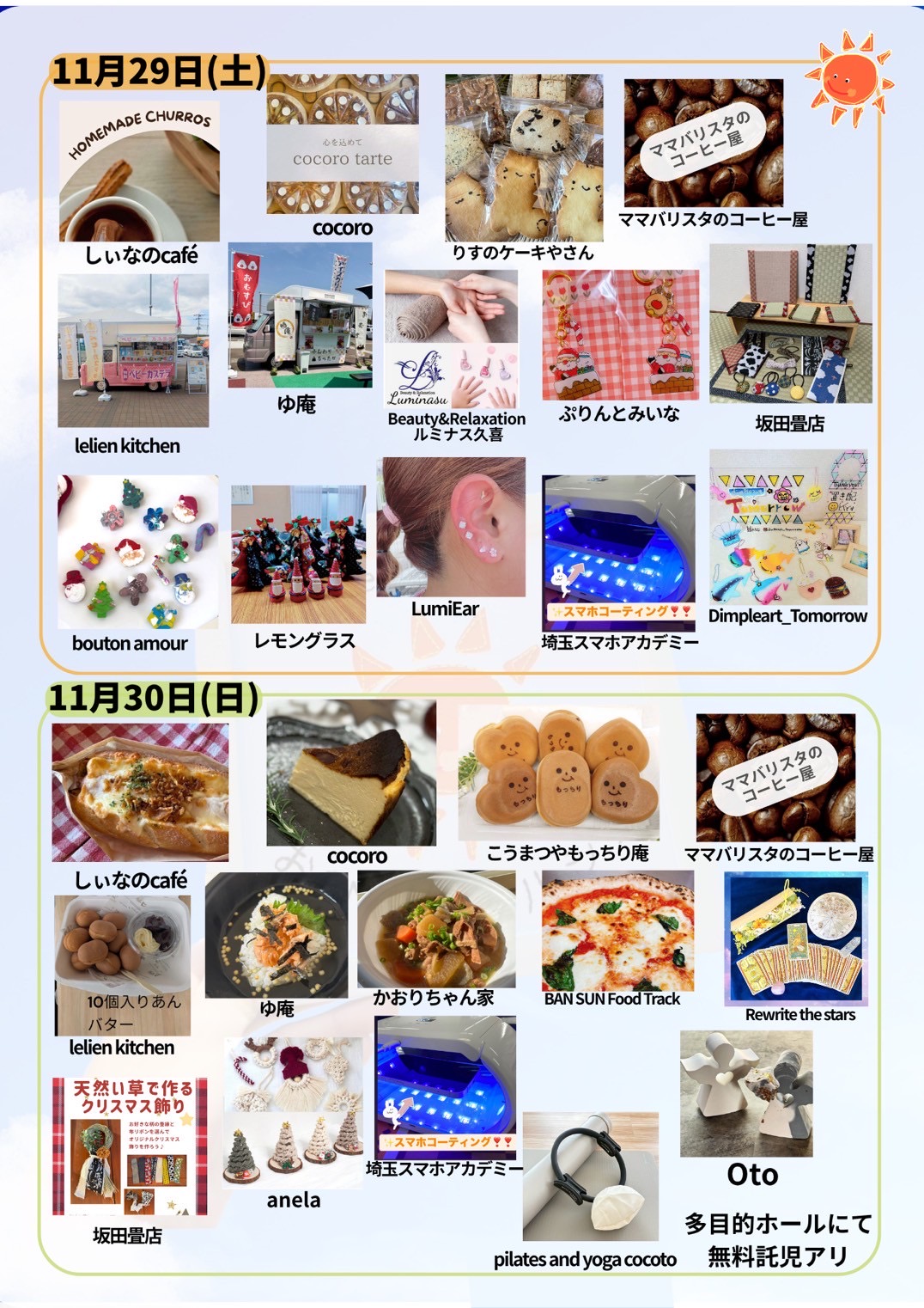 🌞✨11/29(土) おひさまマルシェ出店のお知らせ✨🌞